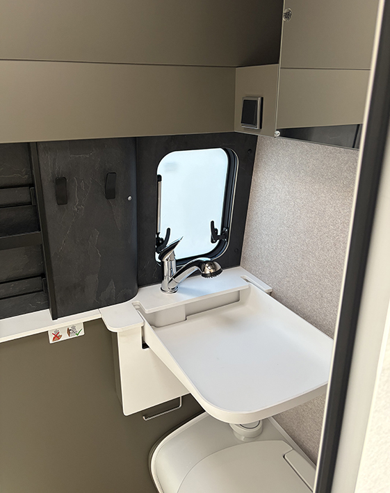 – Caillebotis douche – Lavabo escamotable